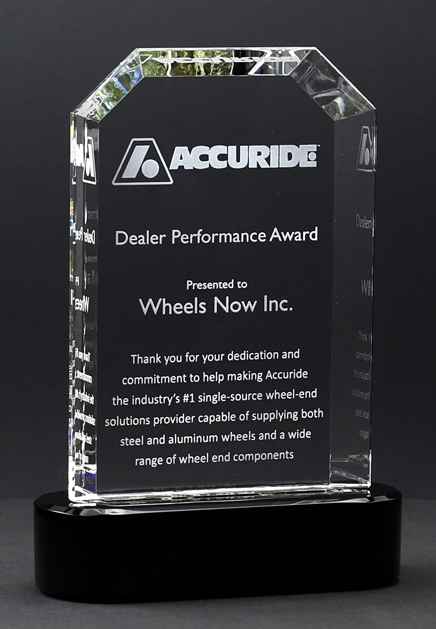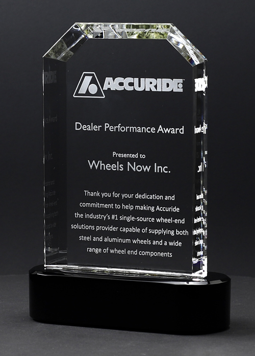 This crystal award has generous space to carve your text and logo for an award you'd be proud to present!