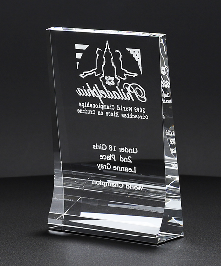 Modern standing crystal plaque award is an excellent item to display your custom logo and message!